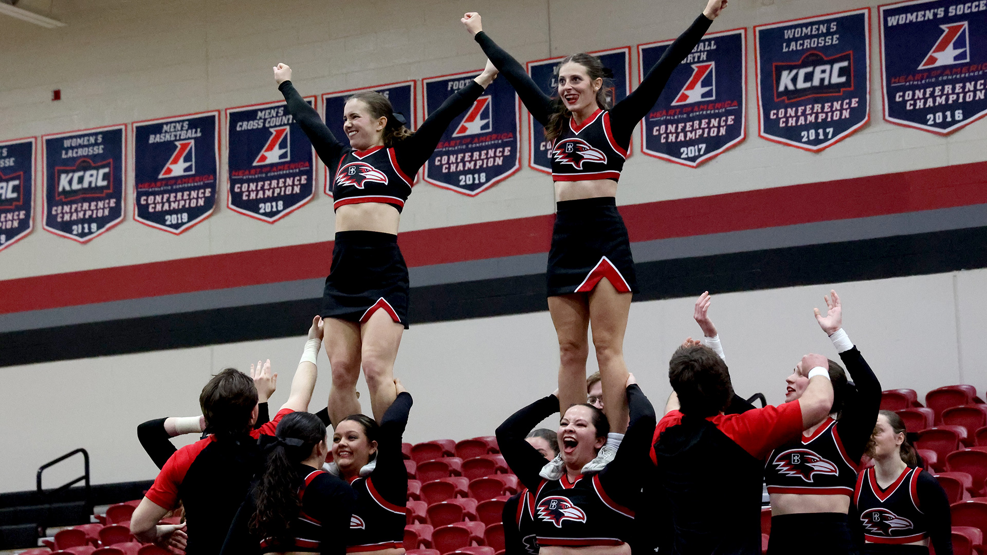 Benedictine returns to the road on Feb. 21, traveling to Columbia, Mo., for the Columbia (Mo.) College Classic. They then turn their sights on the conference, traveling to Des Moines, Iowa, to take part in the annual Heart Competitive Cheer Championships on March 14 hosted by Grand View.